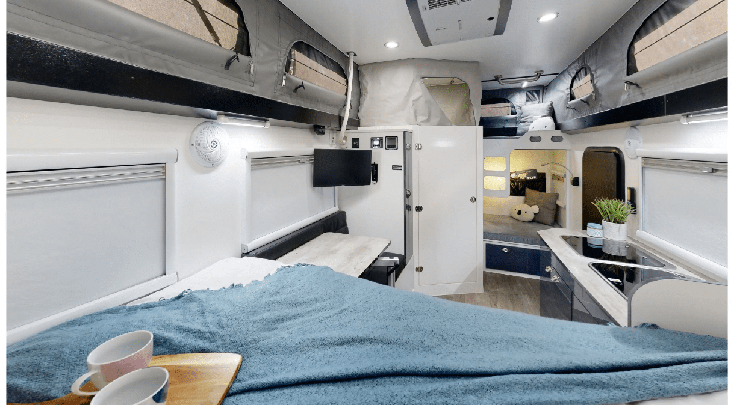 Featuring an innovative bunk bed configuration, the SCT16 Off-Road Hybrid Pop-Top Family 4B is ideal for adventurous families and boasts spacious king bed, large stainless-steel external kitchen, dining area, reverse cycle air conditioning, 300 watts of solar power and industry leading storage. This family friendly pop-top hybrid camper will undoubtedly top your list.